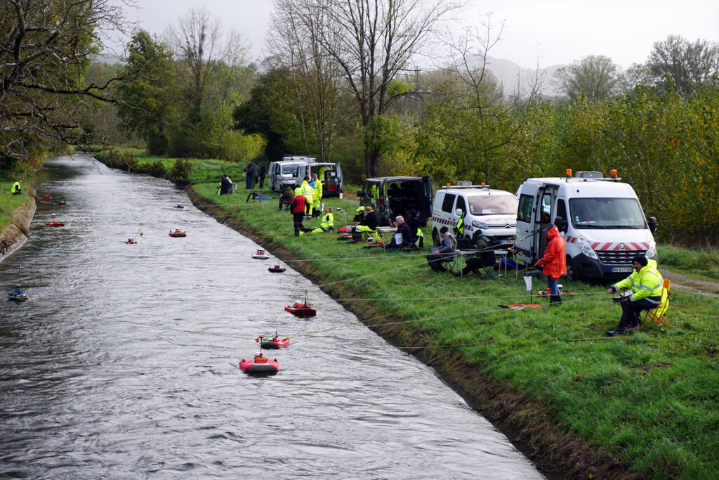 Jeudi 23 octobre 2025, une série de mesures comparatives du canal Saint-Martory s’est déroulée en présence de la DREAL (Direction Régionale de l’Environnement, de l’Aménagement et du Logement). L’objectif de ces mesures est d’analyser précisément le débit du canal, en croisant les données de plusieurs appareils de mesure (courantomètres acoustiques à effet Doppler, ou ADCP).